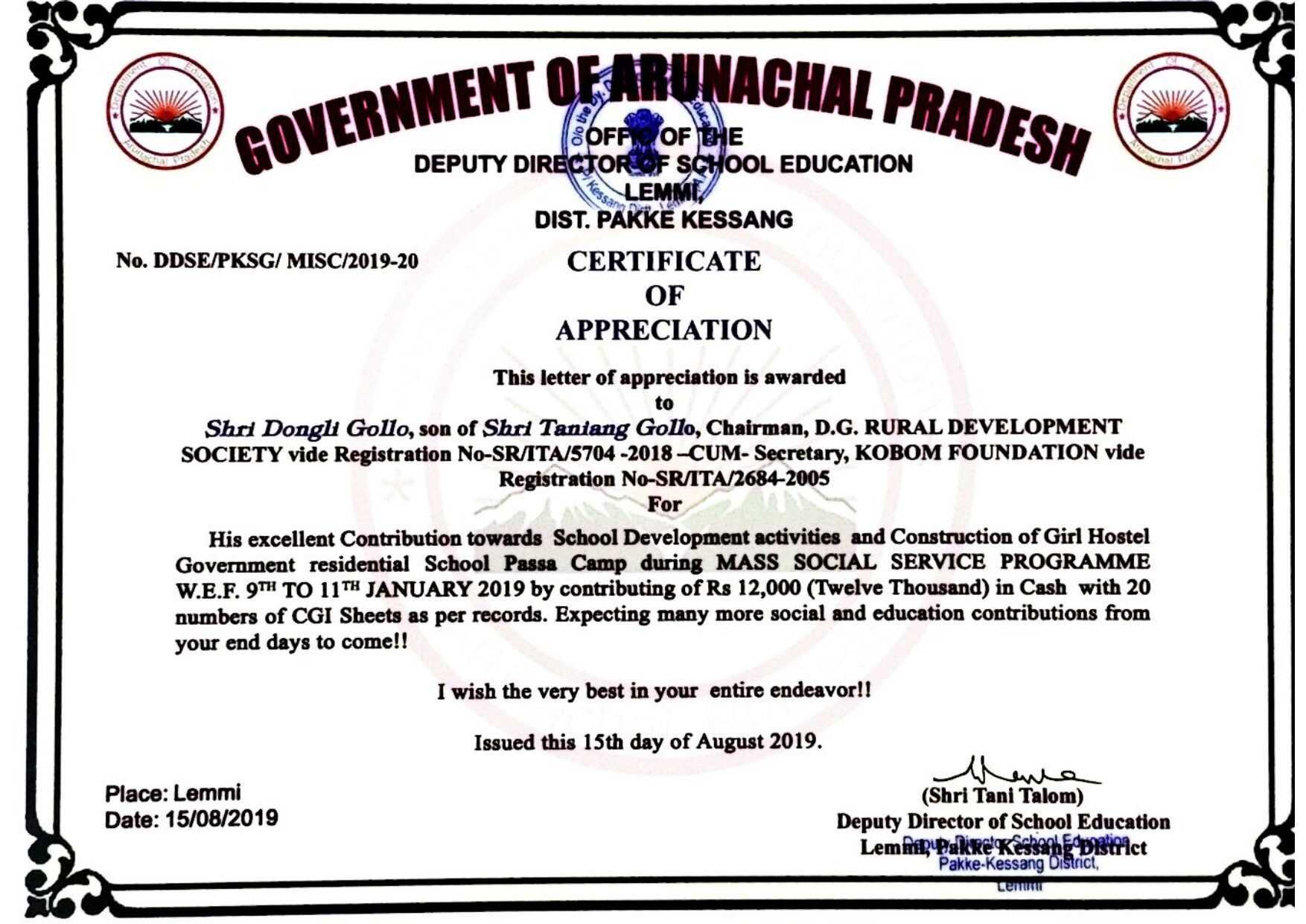 Head Office: Jullang Daath Village Near Don Bosco College ,itanagar,papum Pare Arunachal Pradesh -791111
